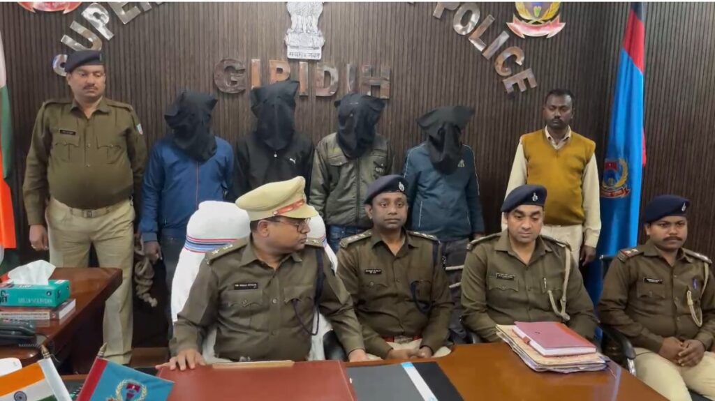 गिरिडीह जिले के बिरनी थाना क्षेत्र में सुरेश मोदी के घर हुए डकैती मामले का गिरिडीह पुलिस ने खुलासा कर लिया है। गिरिडीह पुलिस ने गुप्त सूचना और तकनीकी सहायता से धनबाद में चार आरोपियों को गिरफ्तार किया, जिनमें मो मोहतमिम, करण दास उर्फ दास बाबू, मो गुलजार अंसारी और मो हातिम शामिल हैं।
