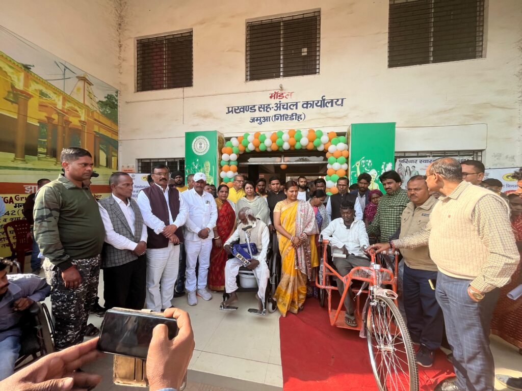 इस दौरान विधायक ने सभी दिव्यांग जनों के बीच ट्राई साइकिल, व्हील चेयर, बैटरी चलित साइकिल, हेलमेट, कान से सुनने वाली उपकरण, ब्लाइंड स्टिक, बैशाखी आदि का वितरण किया गया। साथ ही वरिष्ठ नागरिकों के बीच कमर बेल्ट, घुटने दर्द की बेल्ट आदि का वितरण किया गया। मौके पर जिला समाज कल्याण पदाधिकारी, प्रखंड प्रमुख, जमुआ प्रखंड के प्रखंड विकास पदाधिकारी, अंचलाधिकारी, नीति आयोग के ब्लॉक फेलो समेत अन्य संबंधित अधिकारी आदि उपस्थित थे।