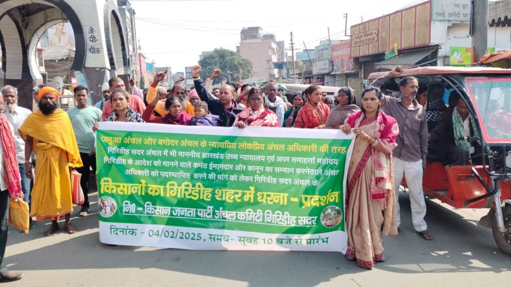 गिरिडीह में किसान जनता पार्टी का धरना: उच्च न्यायालय के आदेश के बावजूद अंचल अधिकारी की लापरवाही पर गुस्सा