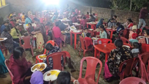 इसके उपरांत भंडारे का आयोजन हुआ, जिसमें बड़ी संख्या में महिलाओं, बच्चों और श्रद्धालुओं ने शामिल होकर प्रसाद ग्रहण किया। मंदिर समिति के नवीन सिन्हा और मुकेश कुमार ने बताया कि 2 फरवरी को जलयात्रा के साथ यज्ञ आरंभ हुआ था, जो तीन दिनों तक चला। इस आयोजन में उत्कर्ष पाण्डेय, देवकेश घोष, ए. आर. पी. वर्मा, सुनील सिंह सहित कई लोगों की महत्वपूर्ण भूमिका रही।