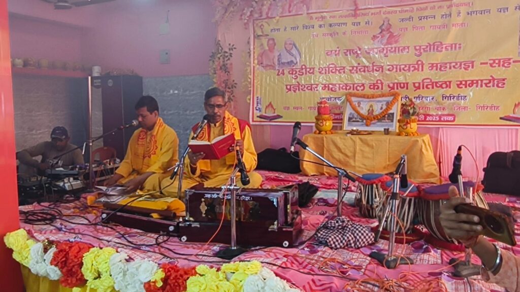 गिरिडीह : गायत्री शक्ति पीठ मंदिर में 24 कुंडी गायत्री महायज्ञ का आयोजन भव्य रूप से चल रहा है। यह महायज्ञ सह प्रज्ञेशवर महादेव मंदिर के तीसरे दिन सोमवार को अनेक धार्मिक अनुष्ठानों के साथ सम्पन्न हुआ। हवन की महक और गायत्री शक्ति पीठ के पुजारियों द्वारा वैदिक मंत्रोच्चारण के बीच श्रद्धालु सपरिवार इस आयोजन का हिस्सा बने, जिसमें महिलाओं से लेकर युवा वर्ग तक शामिल हुआ। हवन में आहुति देने के बाद, पुजारियों ने नौनिहालों का उपन्नयन संस्कार भी कराया और वेदों की माता गायत्री के मंत्रोच्चार से वातावरण को और भी दिव्य बना दिया।