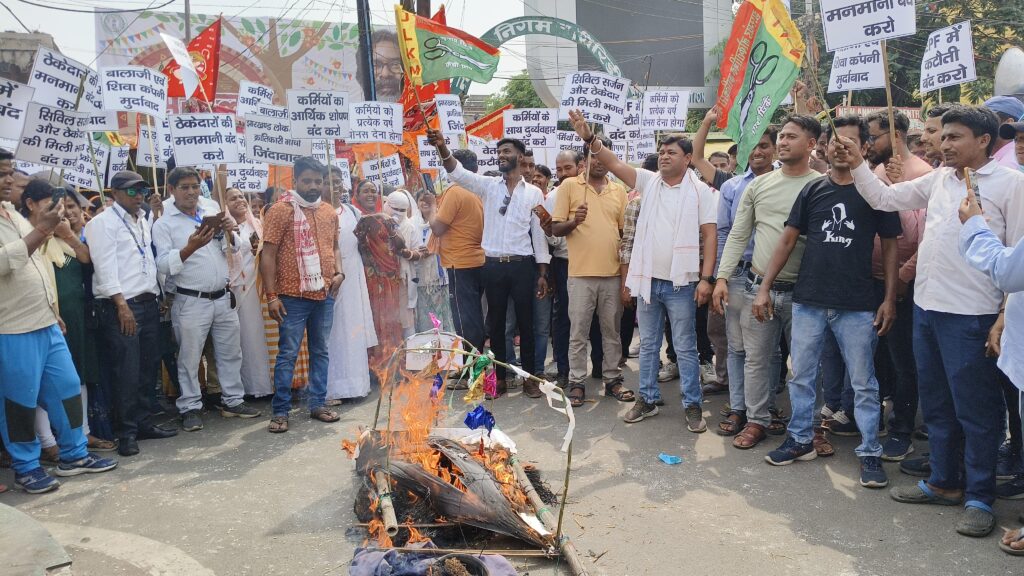 और अब हालत ऐसे है कि दोनों एजेंसी मे काम करने वाले कर्मियों को न्यूनतम मजदूरी तक नहीं मिल रहा है. कर्मी अपने अधिकार को लेकर काला पट्टी बांधकर ड्यूटी कर रहे है. उनके मजदूरी का हक़ दोनों एजेंसी मार रही है. जबकि सरकार द्वारा दोनों एजेंसी को बराबर पैसे का भुगतान किया जाता है. इधर पुतला दहन मे अर्जुन पंडित, आफ़ताब आलम, नवीन गुप्ता, नागेंद्र मिश्रा, ऋषव कुमार समेत कई कार्यकर्त्ता मौजूद थे.