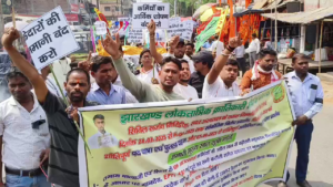 मजदूरों का हक़ मारने का आरोप लगा jklm ने गिरिडीह सदर अस्पताल के आउट सोर्सिंग एजेंसियो का किया पुतला दहन, सिविल सर्जन पर मिलीभगत का आरोप