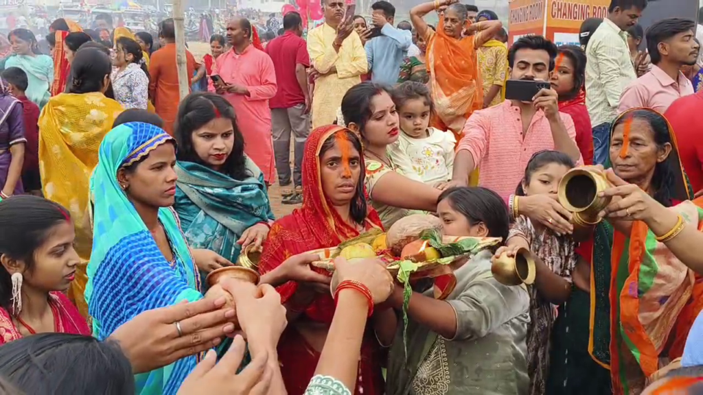 नदी घाटों पर भी आस्था का सैलाब उमड़ पड़ा, वहीं राजघाट और ग्रामीण क्षेत्रों के तालाबों और नदियों में भी भक्तों का जनसैलाब देखा गया। उगते सूर्य को अर्घ्य देने की आतुरता और आस्था के इस अद्वितीय दृश्य ने महापर्व की भव्यता को और बढ़ा दिया।