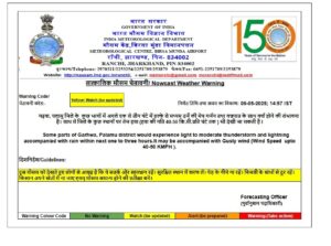 झारखंड में मौसम ने एक बार फिर करवट ले ली है। मौसम विभाग ने रांची सहित चार जिलों – गढ़वा, पलामू, चतरा और रांची – में अगले तीन घंटे के भीतर आंधी-तूफान, मूसलाधार बारिश और वज्रपात की चेतावनी जारी की है। रांची जिले के लिए ऑरेंज अलर्ट और बाकी जिलों के लिए येलो अलर्ट घोषित किया गया है। अनुमान है कि हवाओं की रफ्तार 50 से 60 किलोमीटर प्रति घंटा तक पहुंच सकती है।