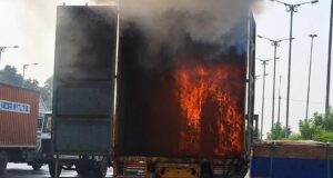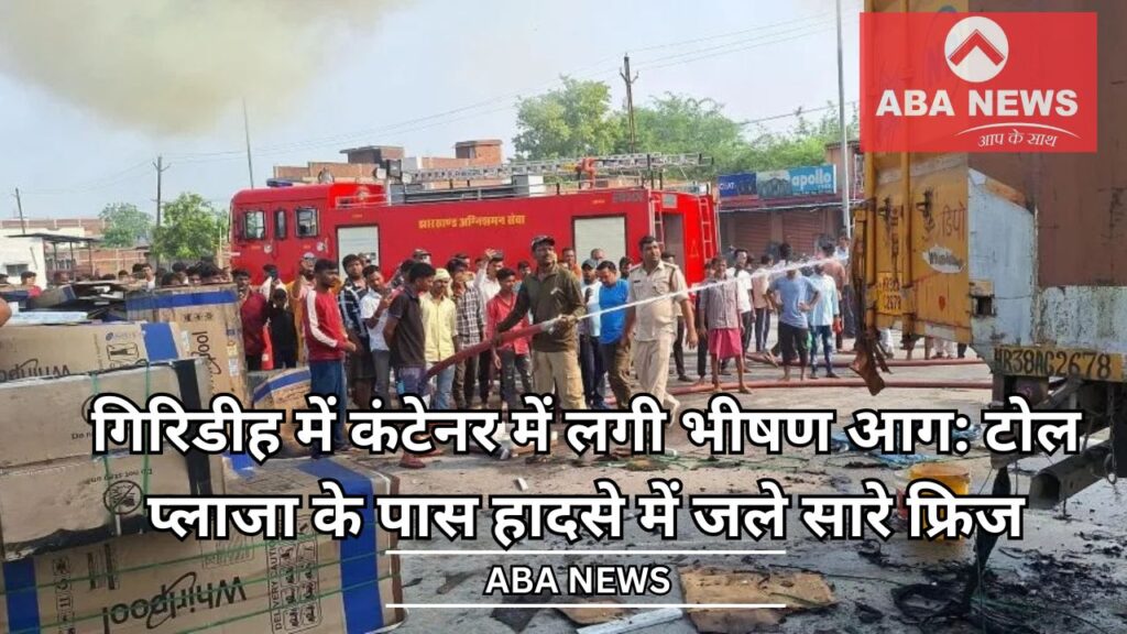 गिरिडीह में कंटेनर में लगी भीषण आग: टोल प्लाजा के पास हादसे में जले सारे फ्रिज, स्थानीयों में आक्रोश