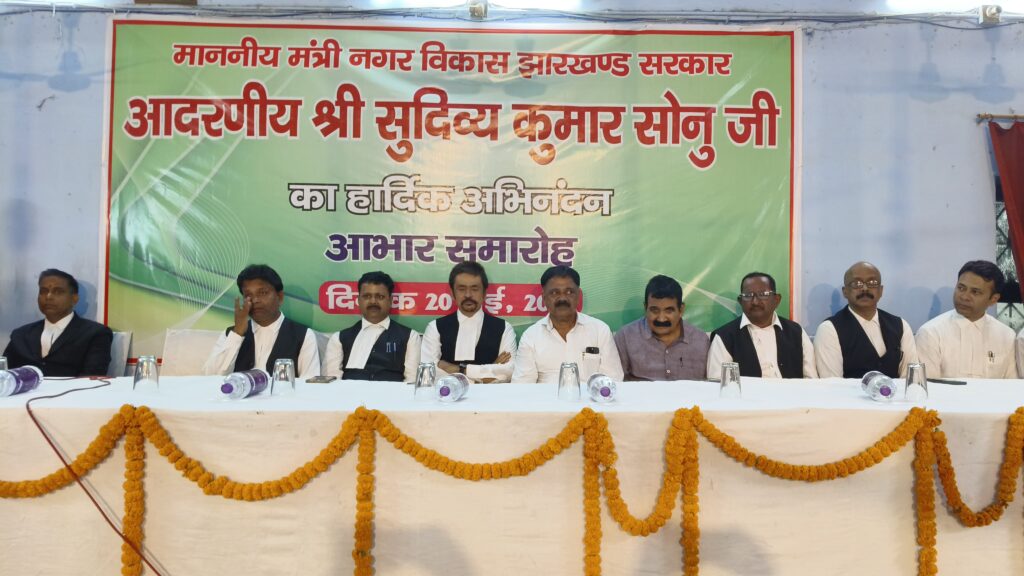 कि हर वर्ग तक उनके क्षमता और के अनुसार योजनाओ का लाभ मिले. और राज्य के वकील जो मुकदमो का भार झेलते हैँ न्याय कि लड़ाई लड़ते हैँ. उन्हें हेमंत सरकार अपनी योजना से कैसे बंचित करती. इधर सम्मान समारोह को बार एसोसिएशन के कई पदाधिकारियों ने सम्बोधित किया. जबकि समारोह मे कई वकील मौजूद थे, पंकज कुमा , विशाल आनंद ,प्रमोद सिंह |