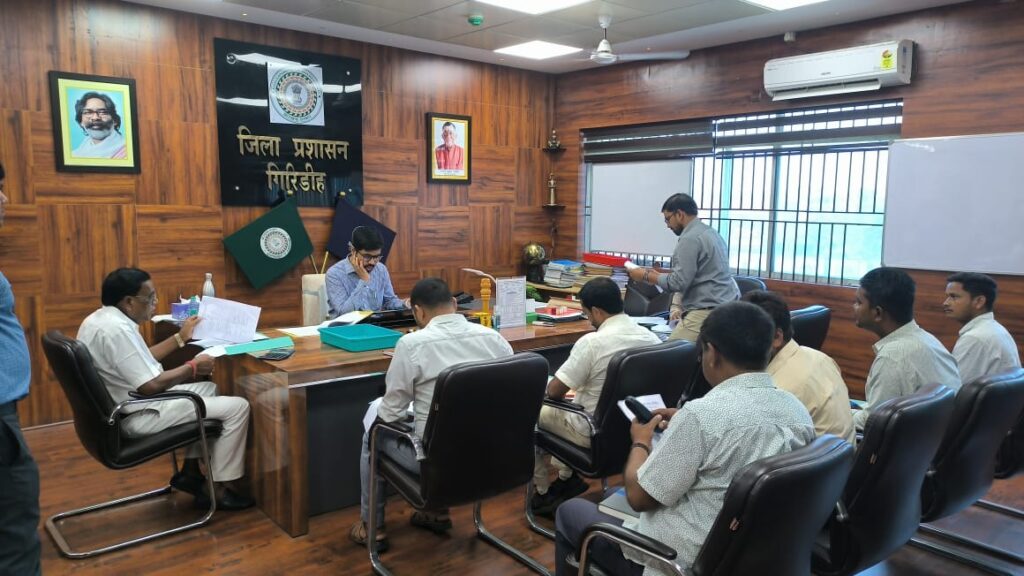 बुधवार को गिरिडीह के में उपायुक्त श्री नमन प्रियेश लकड़ा की अध्यक्षता में तीनों नगर निकायों — नगर निगम गिरिडीह, नगर पंचायत बड़की सरैया और नगर पंचायत धनवार — में संचालित विभिन्न विकास योजनाओं की विस्तृत समीक्षा की गई। बैठक में पाइपलाइन, जलापूर्ति जैसी बुनियादी सेवाओं से जुड़ी योजनाओं की प्रगति की जानकारी ली गई तथा कार्यों को योजनाबद्ध ढंग से पूरा करने के निर्देश दिए गए। उपायुक्त ने पूर्व की बैठकों में दिए गए दिशा-निर्देशों की समीक्षा करते हुए अधिकारियों को अपने-अपने क्षेत्रों का नियमित निरीक्षण करने और समस्याओं के समाधान के लिए विभागीय समन्वय स्थापित करने को कहा।