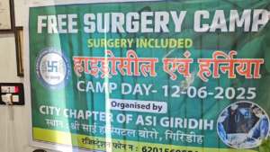 गिरिडीह के बोडो स्थित श्री साई हॉस्पिटल में गुरुवार को सिटी चैप्टर ऑफ ASI द्वारा आयोजित मुफ्त ऑपरेशन शिविर में हाइड्रोसिल और हर्निया के रोगियों का इलाज किया गया। इस शिविर का उद्घाटन सिविल सर्जन एसपी मिश्रा ने किया।