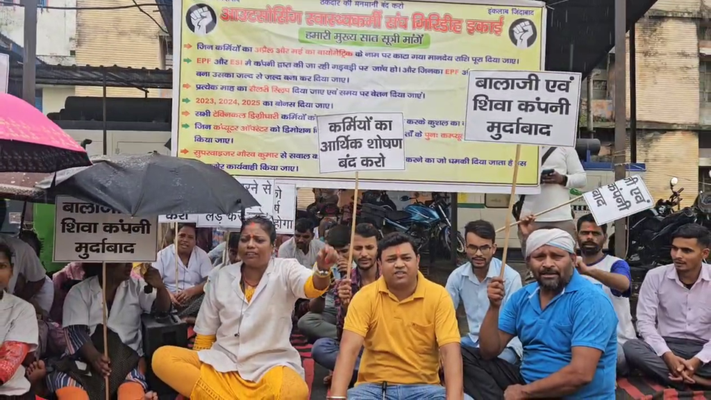 गिरिडीह में स्वास्थ्यकर्मियों की हड़ताल तीसरे दिन भी जारी, डिटेक्टिव फोर्स प्राइवेट लिमिटेड की मनमानी के खिलाफ उठी आवाज