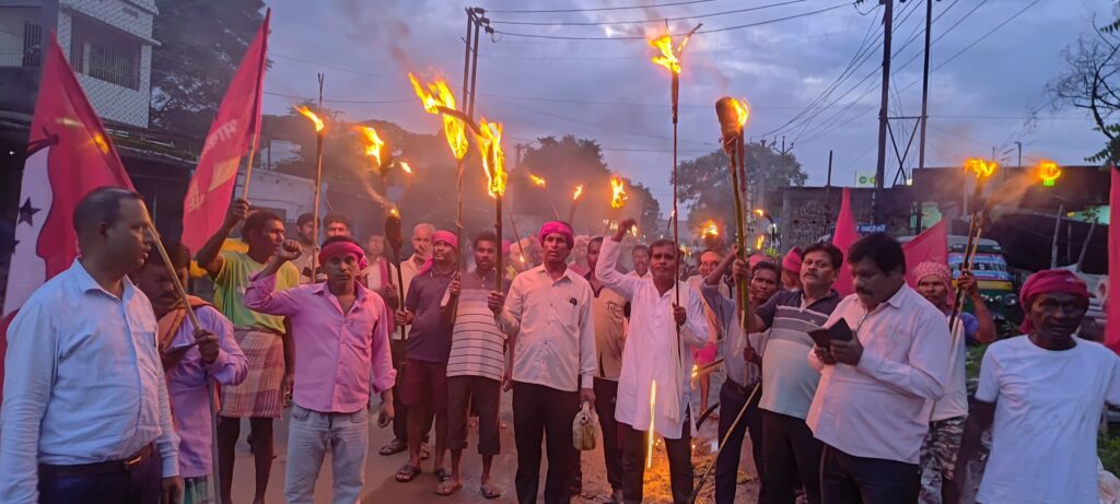 जिसे उखाड़ फेंकना जरूरी है। कार्यक्रम में कॉमरेड पुरन महतो, सनातन साहू, कौशल साव, मधुसूदन कोल, गुलाब कोल्ह, किशोर राय, पवन यादव समेत बड़ी संख्या में कार्यकर्ता शामिल थे। आयोजकों ने प्रशासन को पहले ही सूचना दे दी थी और जुलूस शांतिपूर्ण रहा। इस मशाल जुलूस ने मजदूर हितों की लड़ाई को नई ऊर्जा दी है और आगामी हड़ताल के लिए मजबूत माहौल तैयार किया है।