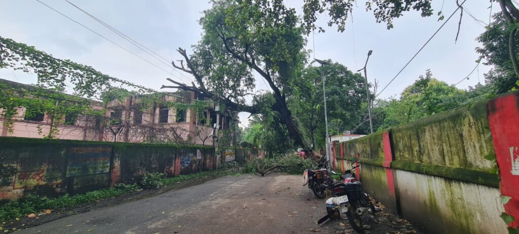 गिरिडीह शहर के झंडा मैदान के पास डिस्ट्रिक्ट जज आवास परिसर में लगा एक विशाल पेड़ गुरुवार रात तेज बारिश के कारण गिर गया, जिससे मुख्य सड़क पर आवागमन पूरी तरह बाधित हो गया। पेड़ गिरने के कारण सीएम स्कूल ऑफ एक्सीलेंस गर्ल्स और जज आवास की बाउंड्री भी क्षतिग्रस्त हो गई।