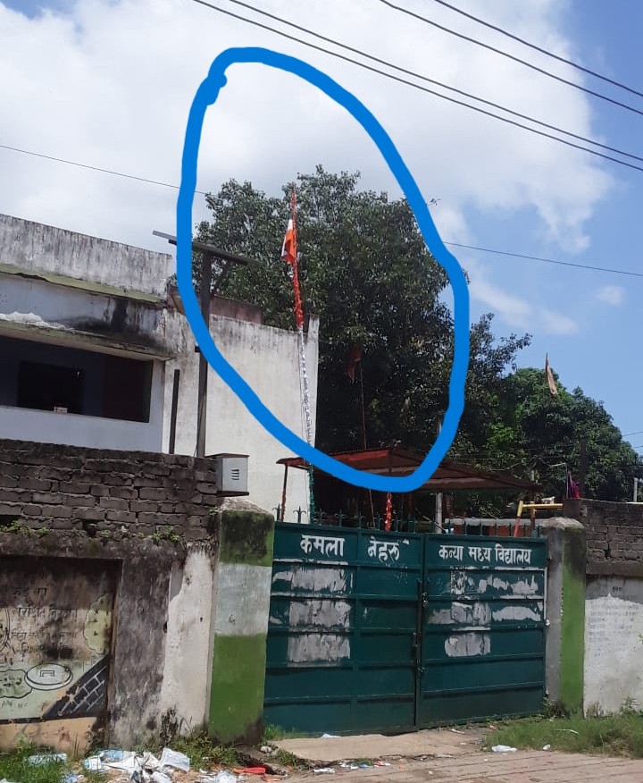 जिले के स्टेशन रोड स्थित कमला नेहरू विद्यालय परिसर में स्वतंत्रता दिवस के अवसर पर शुक्रवार को उल्टा तिरंगा झंडा फहराया गया। स्थानीय व आवागमन करने वाले लोगों ने इस दृश्य को देखने के बाद अपनी प्रतिक्रिया दी। लोगों ने कहा की तिरंगा राष्ट्र का मान सम्मान ओर गौरव है। लेकिन इस तरह का भूल कही न कहीं लापरवाही उजागर होती है।