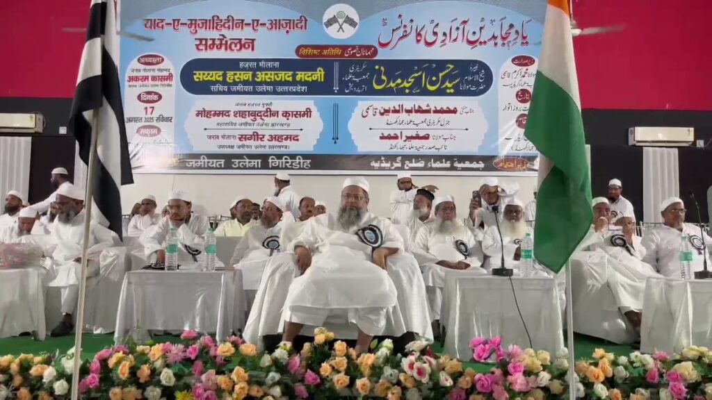 गिरिडीह के टाउन हॉल में जमीयत उलमा गिरिडीह की ओर से “याद-ए-मुजाहिदीन-ए-आजादी कॉन्फ्रेंस” का भव्य आयोजन किया गया, जिसमें विभिन्न राज्यों से आए कई विद्वान और वक्ताओं ने हिस्सा लिया। कार्यक्रम में विशेष रूप से शेख-उल-इस्लाम के पोते हजरत मौलाना सैयद हसन असजद मदनी और जमीयत उलमा उत्तर प्रदेश के सचिव मौजूद रहे। वहीं झारखंड से जमीयत के महासचिव मुफ़्ती मुहम्मद शहाबुद्दीन क़ासिम, उपाध्यक्ष मौलाना सगीर अहमद सहित कई बुद्धिजीवी, राजनीतिक नेता और जमीयत के पदाधिकारी भी शामिल हुए।