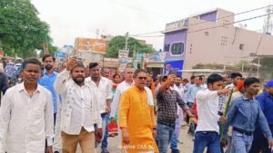 जमुआ में पुलिस दुर्व्यवहार के खिलाफ राष्ट्रीय यादव सेना, राजद और भीम आर्मी का लाठी मार्च