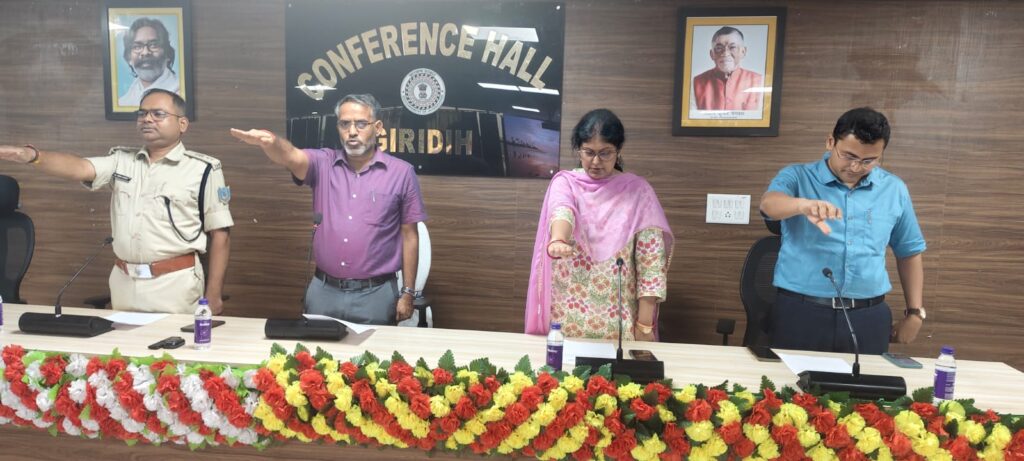 गिरिडीह, 29 अगस्त 2025: राष्ट्रीय खेल दिवस के अवसर पर आज समाहरणालय सभागार में जिला प्रशासन की ओर से विशेष कार्यक्रम आयोजित किया गया। इस मौके पर जिला उपायुक्त, पुलिस अधीक्षक, उप विकास आयुक्त, अनुमंडल पदाधिकारी समेत कई अधिकारियों ने मेजर ध्यानचंद की प्रतिमा पर माल्यार्पण कर उन्हें श्रद्धांजलि अर्पित की। सभी ने भारतीय हॉकी के जादूगर कहे जाने वाले मेजर ध्यानचंद के अतुलनीय योगदान को याद किया और कहा कि उनके संघर्ष और उपलब्धियां भारतीय खेल जगत के लिए सदैव प्रेरणास्रोत रहेंगी।
