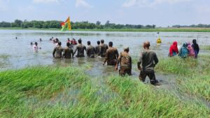 गिरिडीह। खंडोली बचाओ आंदोलन के तहत आज JLKM के बैनर तले बड़ी संख्या में ग्रामीण खंडोली डैम पहुंचे और जल समाधि लेने का प्रयास किया। ग्रामीणों के पानी में उतरते ही प्रशासनिक हलचल तेज हो गई। मौके पर तैनात पुलिस बल ने पहले समझाने की कोशिश की, लेकिन जब ग्रामीण नहीं माने तो उन्हें जबरन पानी से बाहर निकाला गया। इस दौरान मौके पर तनावपूर्ण स्थिति देखी गई।