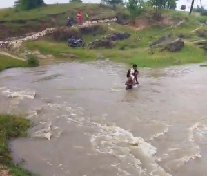 गिरिडीह जिले के देवरी प्रखंड के हरियाडीह पंचायत स्थित मंदनाडीह गांव से गुरुवार को एक शर्मसार कर देने वाली तस्वीर सामने आई, जो विकास के दावों की पोल खोलती है। दोपहर करीब एक से डेढ़ बजे के बीच स्कूल से लौट रहे बच्चे उफनती नदी को पार नहीं कर सके, क्योंकि गांव में ना पुल है, ना पक्की सड़क। मजबूरी में गांव के युवकों आशीष मुर्मू और भोला बासके ने बच्चों को अपने कंधों पर बैठाकर नदी पार करवाया।
