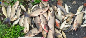 शहरी क्षेत्र के बाभनटोली तालाब में जहरकांड, 50 क्विंटल से अधिक मछलियों की मौत