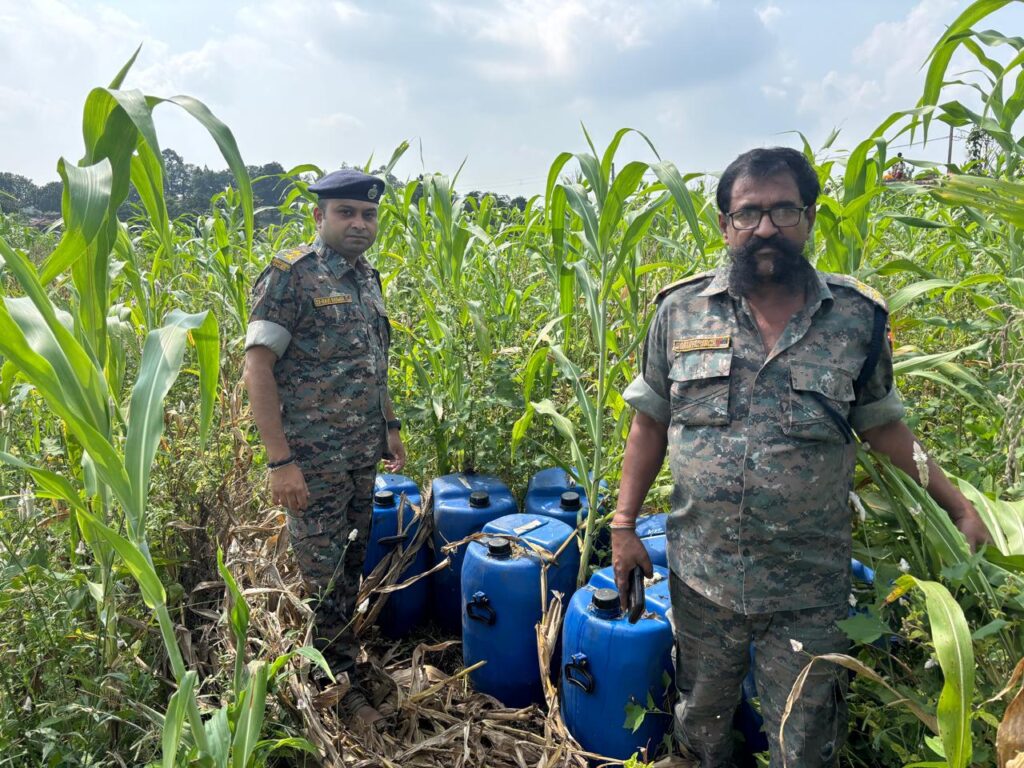 गिरिडीह जिले के गावाँ थाना क्षेत्र में उत्पाद विभाग ने ड्रोन की सहायता से एक बड़ी कार्रवाई को अंजाम दिया। रवि रंजन, अवर निरीक्षक उत्पाद, गिरिडीह के नेतृत्व में यह छापामारी अभियान बरमसिया और अलखडीहा गाँव में चलाया गया। कार्रवाई के दौरान टीम ने अवैध चुलाई शराब बनाने के उपकरण, जावा महुआ और भट्टी को मौके पर ही विनष्ट कर दिया। साथ ही मौके से कुल 1470 लीटर अवैध चुलाई शराब और 7400 किलोग्राम जावा महुआ जब्त किया गया। यह कार्रवाई क्षेत्र में अवैध शराब कारोबार पर नकेल कसने की दिशा में एक बड़ी सफलता मानी जा रही है।
