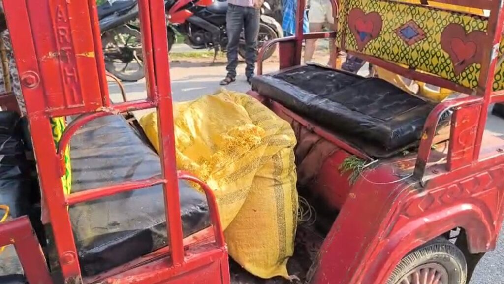 गिरिडीह। नगर थाना क्षेत्र के स्टेशन रोड में शुक्रवार की सुबह उस वक्त हड़कंप मच गया जब एक टोटो चालक को प्रतिबंधित मांस लेकर जाते हुए स्थानीय लोगों ने रंगे हाथ पकड़ लिया। देखते ही देखते मौके पर लोगों की भीड़ जमा हो गई और आक्रोशित लोगों ने टोटो चालक की जमकर धुनाई कर दी। लोगों का आरोप था कि चालक लंबे समय से प्रतिबंधित मांस की तस्करी में लिप्त है। सूचना मिलते ही नगर थाना प्रभारी ज्ञान रंजन अपने दल बल के साथ मौके पर पहुंचे और स्थिति को नियंत्रण में लिया। पुलिस ने तत्काल चालक को हिरासत में लेकर पूछताछ शुरू कर दी है, वहीं प्रतिबंधित मांस और टोटो को जब्त कर लिया गया है।