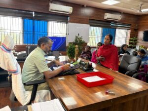 गिरिडीह के उपायुक्त रामनिवास यादव ने मंगलवार को अपने कार्यालय कक्ष में साप्ताहिक जनता दरबार का आयोजन किया। जिले के विभिन्न प्रखंडों से आए नागरिकों ने पेंशन, राशन कार्ड, आवास सहित कई विभागीय समस्याओं को उपायुक्त के समक्ष रखा। उपायुक्त ने सभी शिकायतों को प्राथमिकता से सुनते हुए संबंधित अधिकारियों को मौके पर ही आवश्यक निर्देश दिए।