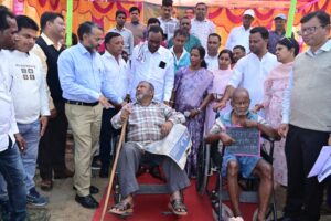 शिविर में उपायुक्त ने दो लाभुकों को व्हीलचेयर उपलब्ध कराई, जिससे बुजुर्ग के चेहरे खिल उठे। साथ ही मौके पर दो छात्राओं और एक छात्र का जाति प्रमाण पत्र बनवाया गया। उपायुक्त ने सभी स्टॉलों का निरीक्षण कर अधिकारियों को सुयोग्य लाभुकों तक योजनाओं का लाभ सुनिश्चित करने, आवेदनों के त्वरित निष्पादन और ग्रामीणों को प्रेरित करने के निर्देश दिए। उन्होंने कहा कि शिविर का उद्देश्य लोगों तक योजनाओं की सही जानकारी पहुँचाकर अधिक से अधिक लाभ सुनिश्चित करना है।
