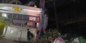 गिरिडीह जिले के देवरी थाना क्षेत्र में जमुआ–चतरो मुख्य मार्ग पर जलखारियोडीह के पास एक बड़ा हादसा होते-होते टल गया। रिफाइन और चावल से भरा ट्रक चक्का ब्लास्ट होने के बाद अनियंत्रित होकर सड़क किनारे पलट गया। हादसे के तुरंत बाद स्थानीय लोगों ने मौके पर पहुंचकर ट्रक चालक और उपचालक को बाहर निकाला और उन्हें नजदीकी अस्पताल भेजा गया, जहाँ दोनों का इलाज जारी है।