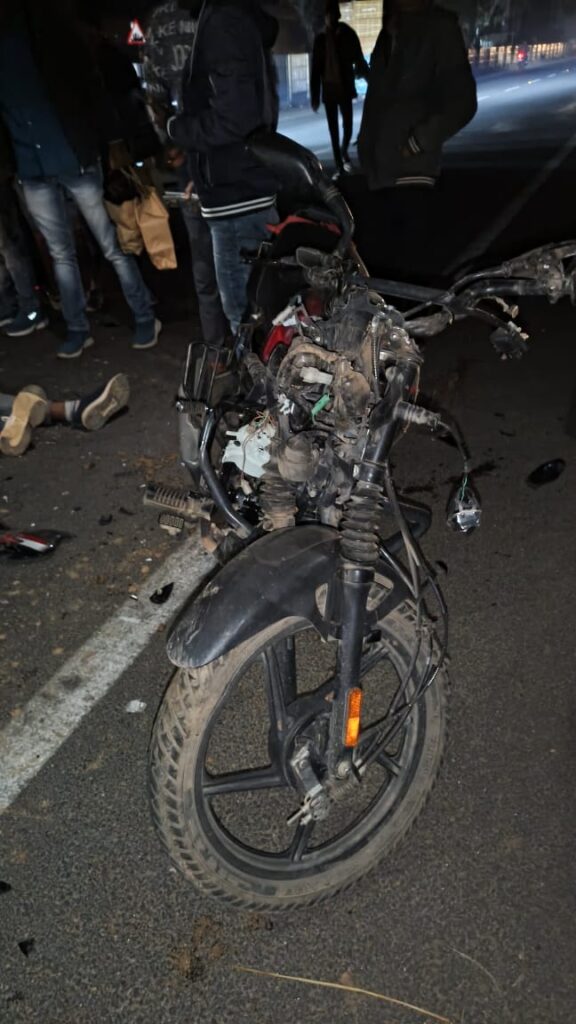 गिरिडीह–बेंगाबाद राष्ट्रीय राजमार्ग पर दामोदरडीह गांव के समीप गुरुवार देर शाम हुए भीषण सड़क हादसे में बाइक सवार एक युवक की दर्दनाक मौत हो गई, जबकि दूसरा युवक गंभीर रूप से घायल हो गया। घायल को प्राथमिक उपचार के बाद सदर अस्पताल गिरिडीह से रांची रेफर किया गया है, जहां उसकी हालत नाजुक बताई जा रही है। जानकारी के अनुसार, महतोडीह गांव निवासी मो. इमरान और मो. शहादत बाइक से गिरिडीह से घर लौट रहे थे, तभी एक अज्ञात वाहन ने पीछे से जोरदार टक्कर मार दी और मौके से फरार हो गया।