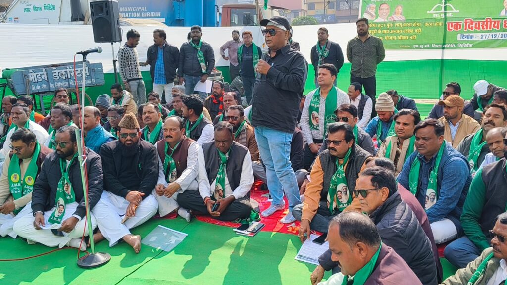धरना को संबोधित करते हुए संजय सिंह ने कहा कि VB-G RAM G कानून ग्रामीण मजदूरों के रोजगार के कानूनी अधिकार को खत्म करने की साजिश है, जिसे झामुमो कभी स्वीकार नहीं करेगा। धरना समाप्ति के बाद झामुमो प्रतिनिधिमंडल ने गिरिडीह उपायुक्त को ज्ञापन सौंपकर बिल को वापस लेने और मनरेगा को और मजबूत करने की मांग की। प्रदर्शन में पूर्व विधायक केदार हाजरा सहित बड़ी संख्या में कार्यकर्ता मौजूद रहे।