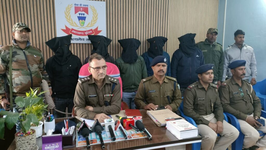 गिरिडीह नगर थाना क्षेत्र अंतर्गत नेताजी चौक के पास एंटी क्राइम चेकिंग के दौरान पुलिस को बड़ी सफलता हाथ लगी है। चोरी की ग्लैमर मोटरसाइकिल के साथ पाँच आरोपियों को गिरफ्तार किया गया है, जबकि एक आरोपी फरार बताया जा रहा है। इस मामले की जानकारी डीएसपी नीरज कुमार सिंह ने प्रेस वार्ता के दौरान दी। उन्होंने बताया कि चेकिंग के दौरान सहायक अवर निरीक्षक प्रमोद प्रसाद ने काले रंग की ग्लैमर बाइक (रजिस्ट्रेशन नंबर JH11S 9135) पर सवार दो युवकों को रोकने का प्रयास किया, लेकिन पुलिस को देखते ही वे भागने लगे। पीछा कर दोनों को पकड़ लिया गया, जिनकी पहचान रविन्द्र साव और विजय साव, निवासी सुगासार, थाना पचम्बा के रूप में हुई।