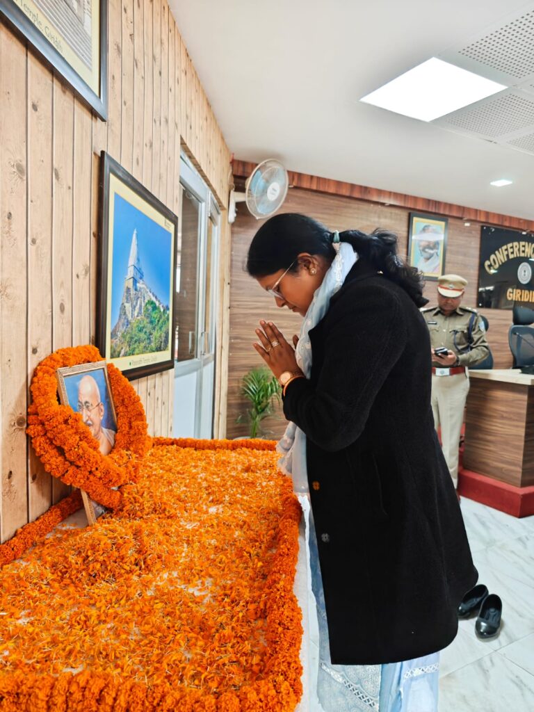 गांधी पुण्यतिथि पर गिरिडीह में श्रद्धांजलि, अधिकारियों ने बापू के आदर्शों को याद किया