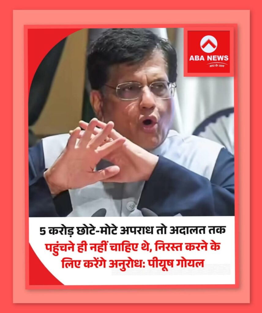नई दिल्ली: वाणिज्य एवं उद्योग मंत्री पीयूष गोयल ने कहा कि भारत की न्यायिक प्रणाली में लगभग 5 करोड़ छोटे अपराधों से संबंधित लंबित मामलों का अंबार लगा हुआ है, जिनमें से अधिकांश मामले अदालतों तक पहुंचने ही नहीं चाहिए थे। संसद द्वारा जन विश्वास (प्रावधान संशोधन) विधेयक, 2026 पारित किए जाने के एक दिन बाद उन्होंने यह बात कही।