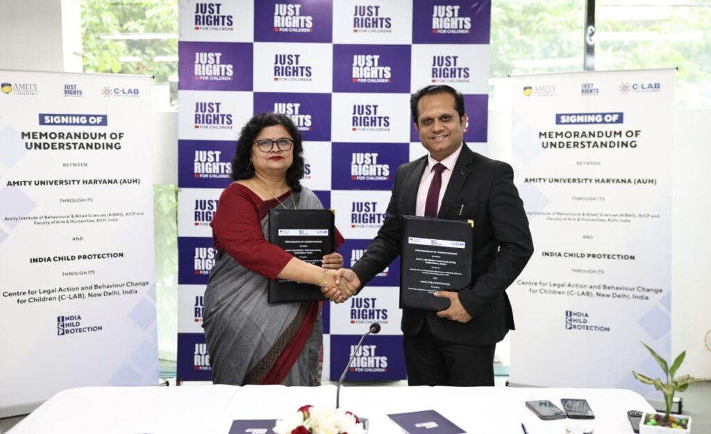 समझौते पर इंडिया चाइल्ड प्रोटेक्शन की कार्यकारी निदेशक डॉ. संपूर्णा बेहुरा और एमिटी यूनिवर्सिटी हरियाणा के प्रो वाइस चांसलर डॉ. विकास मधुकर ने हस्ताक्षर किए। अधिकारियों ने बताया कि यह साझेदारी अकादमिक ज्ञान और जमीनी अनुभवों के बीच की दूरी को कम करेगी तथा बाल सुरक्षा तंत्र को अधिक संवेदनशील और प्रभावी बनाएगी। साथ ही बाल यौन शोषण मामलों में ‘सपोर्ट पर्सन’ प्रशिक्षण को भी संस्थागत मान्यता दी जाएगी।