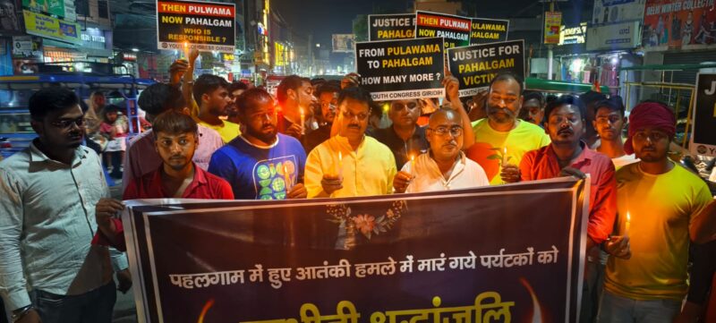 गिरिडीह युवा कांग्रेस का कैंडल मार्च, भारतीय नागरिकों की हत्या पर विरोध