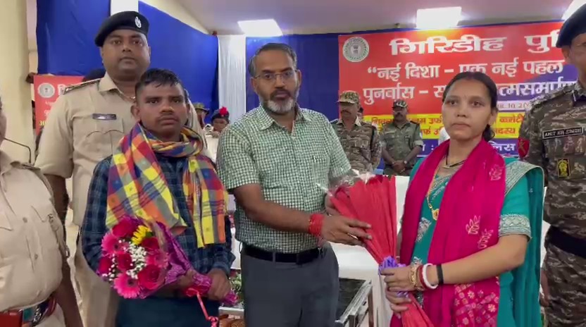गिरिडीह में नक्सली दंपती ने किया आत्मसमर्पण, मुख्यधारा से जुड़ने का लिया संकल्प